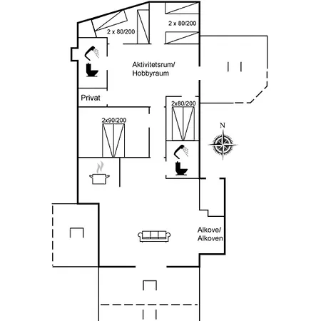 يوجد منطقة المطبخ الصغير المجهز المجهز بالبرَّاد والفرن وأدوات المطبخ. يمكن للضيوف تناول الطعام في Cafe West Point، على مسافة قريبة من مكان الإقامة في Blåvand. يقع أقرب مطار إسبجيرغ على بعد 40 كم من بيت العطلات في Blåvand. وتشتمل خيارات الاسترخاء على الجاكوزي والحوض الساخن.